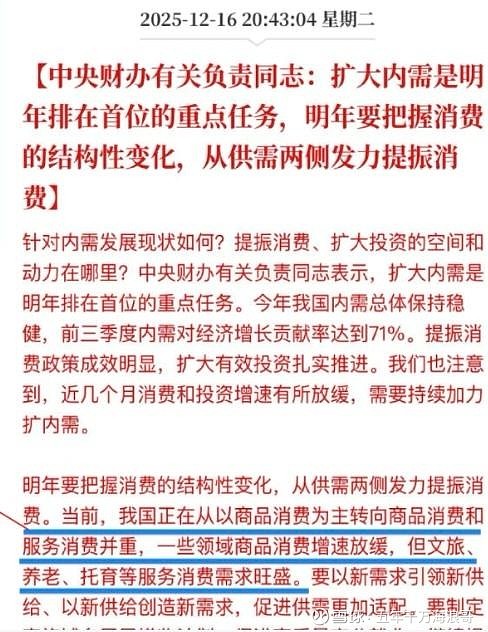$万事利(SZ301066)$ $水羊股份(SZ300740)$ $奥飞娱乐(SZ002292)$万事利,商品消费和服务消费并重的好股。今年过节不收礼,收礼只收万事利。「我国正在从以商品消费为主转向商品消费和服务消费并重,一些领域商品消费增速放缓,但文旅,养老,托育等服务消费需求旺盛。要以新需求引领新供给,以新供给创造新需求,促进供需更加适配。」