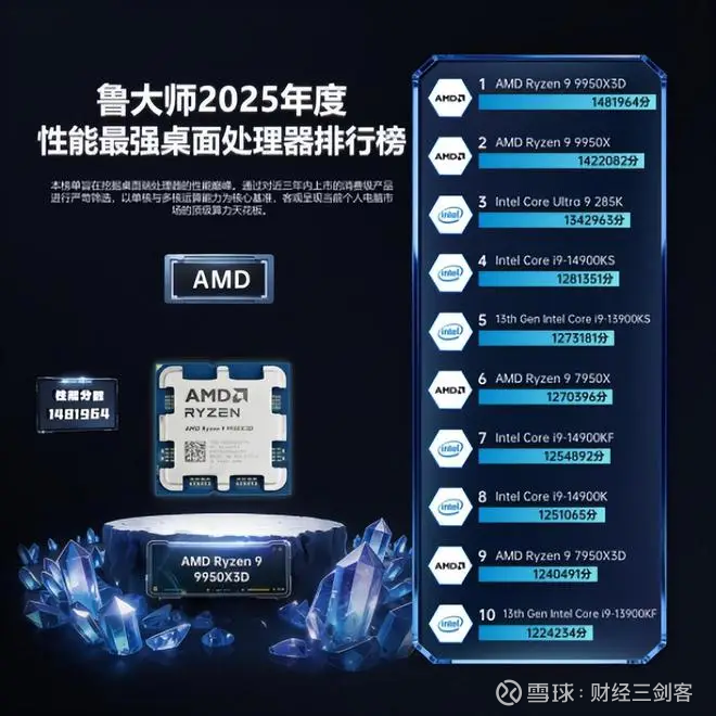 AMD Ryzen 9 9950X3D 荣获“2025年度性能最强桌面处理器”。依托第二代 3D V-Cache 技术带来的 144MB 超大缓存,其在高帧电竞与专业生产力双赛道同时拉满上限:游戏端轻松突破千帧,创作端则以更稳定的吞吐能力建立优势,代表了桌面平台性能天花板的最新高度。