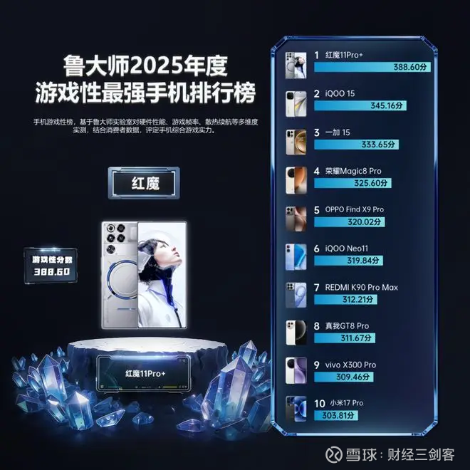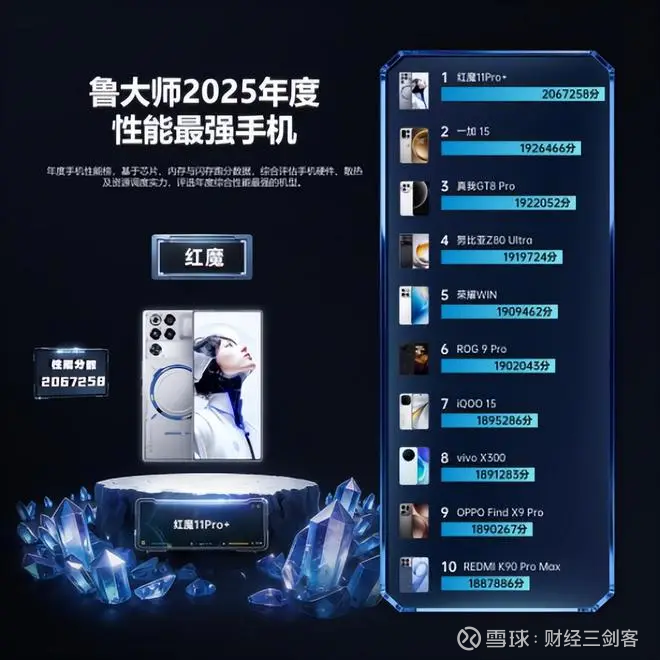 红魔 11Pro+ 荣登“2025年度性能最强手机”。它用 2067258 的惊人跑分 证明:极致性能不仅能冲榜,更能稳定落地。行业首创“风冷+水冷”散热系统让性能释放不再短跑式爆发,而是更持久、更稳态的高帧输出,树立电竞旗舰的硬核标准。