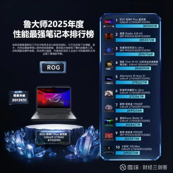 ROG 枪神 9 Plus 超竞版 夺得“2025年度性能最强笔记本”。它不仅仅是把 Ultra 9 与 RTX 5090 放进一台机身,而是把旗舰性能真正跑出来:冰川散热 3.0 与液金覆盖带来更强的持续释放能力,让高性能输出稳定“不断电”,为 2025 旗舰性能本树立了直接参照系。