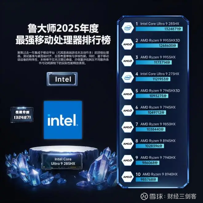 Intel Core Ultra 9 285HX 摘得“2025年度性能最强移动处理器”桂冠。以 原生24核架构与最高5.5GHz睿频 为核心,它在 55W 基础功耗下实现性能与能效的同步突破,并深度耦合 AI 加速能力,让移动端从“能跑”到“全程高能”完成跃迁,是高性能本平台的年度标杆。