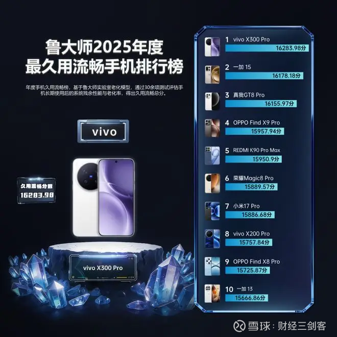 vivo X300 Pro 荣获“2025年度最久用流畅手机”。依托天玑9500与自研蓝河流畅引擎,它在超核计算与光子存储能力加持下,以 16283.98 的高分验证长期使用依旧响应迅捷,体现了“耐久流畅”从口号到能力的落地。