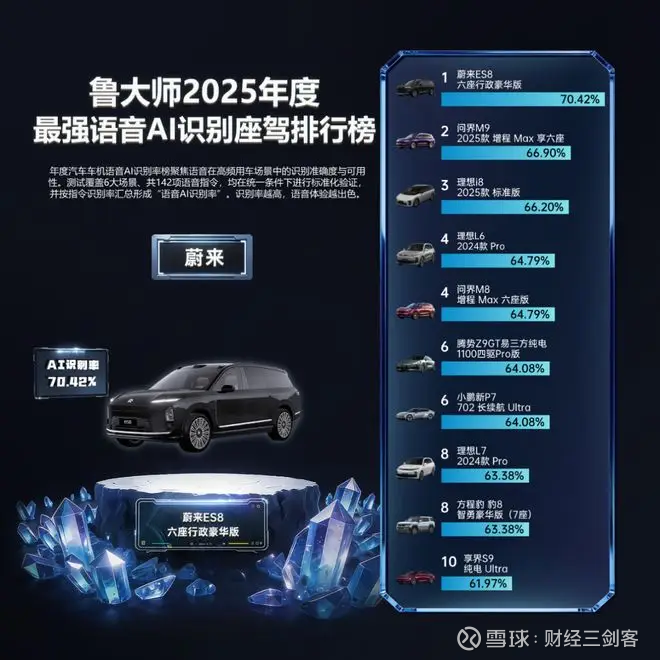 蔚来 ES8 六座行政豪华版 荣膺“2025年度最强语音AI识别座驾”。凭借 Cedar S 雪松系统与 NOMI 智能伙伴,它以 70.42% 语音识别率 夺冠,同时成为 71 款参评车中唯一支持语音控制双闪的产品,让“语音交互”从能用走向可靠、从好玩走向安全。