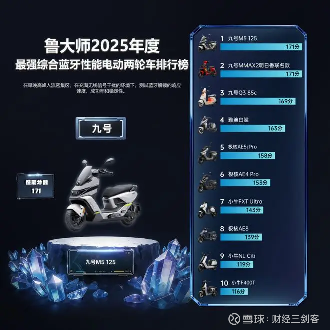 九号 M5 125 荣获“2025年度最强智能电动两轮车”。从多模态解锁到车辆状态可视化,再到全链路互联体验,九号让两轮车从交通工具进化为数字生活的移动节点,最终以 915 分智能总分 领跑榜单,成为年度智能两轮出行的标杆产品。