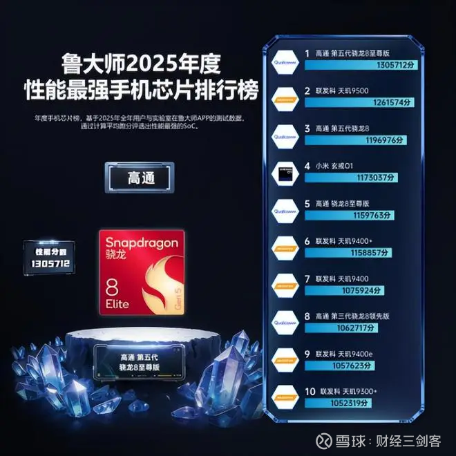 高通第五代骁龙8至尊版 荣膺“2025年度性能最强手机芯片”。凭借台积电第三代 3nm 工艺与最高 4.6GHz 超级核心,其以 1305712 超高跑分 进一步刷新移动端性能上限,覆盖 CPU、GPU 与 AI 算力综合升级,为旗舰手机体验提供最关键的底座支撑。