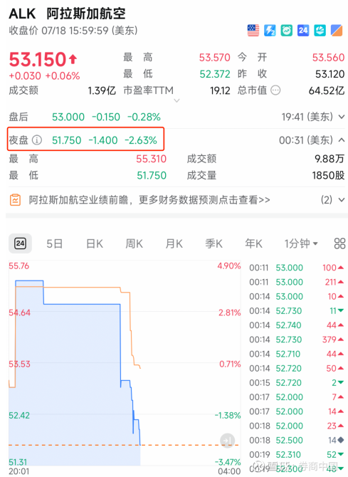 受此影响,阿拉斯加航空股价在夜盘交易时段直线跳水,由涨转跌,现跌2.63%,此前一度涨超4%。
