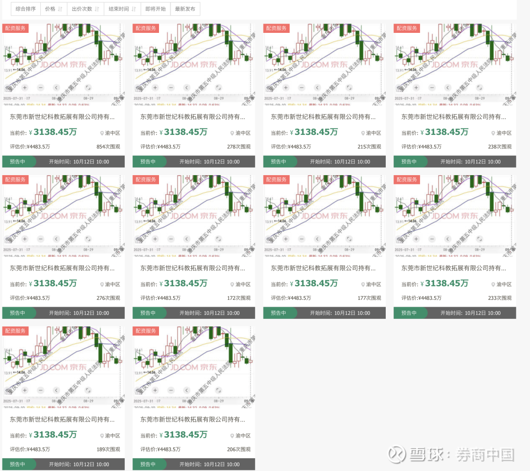 近日,锦龙股份公告称,东莞市新世纪科教拓展有限公司(以下简称“新世纪公司”)持有公司的3000万股将在10月12日进行司法拍卖,起拍价合计3.14亿元,这是锦龙股份股权年内第三次被司法拍卖。前两次分别涉及6230万股、3500万股,且均因一拍不顺进入二拍。