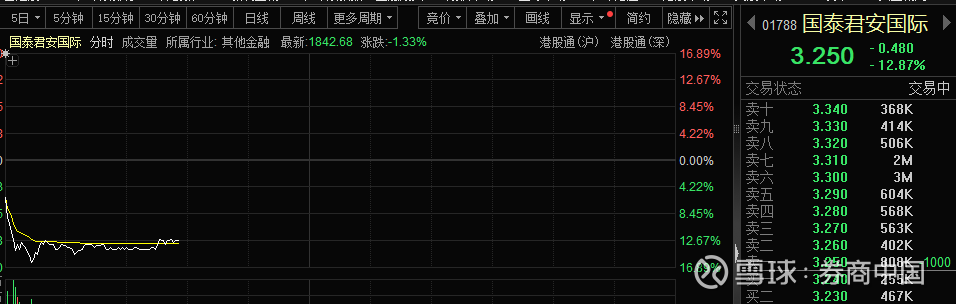 今年6、7月份那波行情当中,国泰君安国际可谓是风头无两。在不到一个月的时间里,该股涨了将近600%,但随后开启持续调整行情。今天,该股迎来暴跌,股价一度跌近17%。