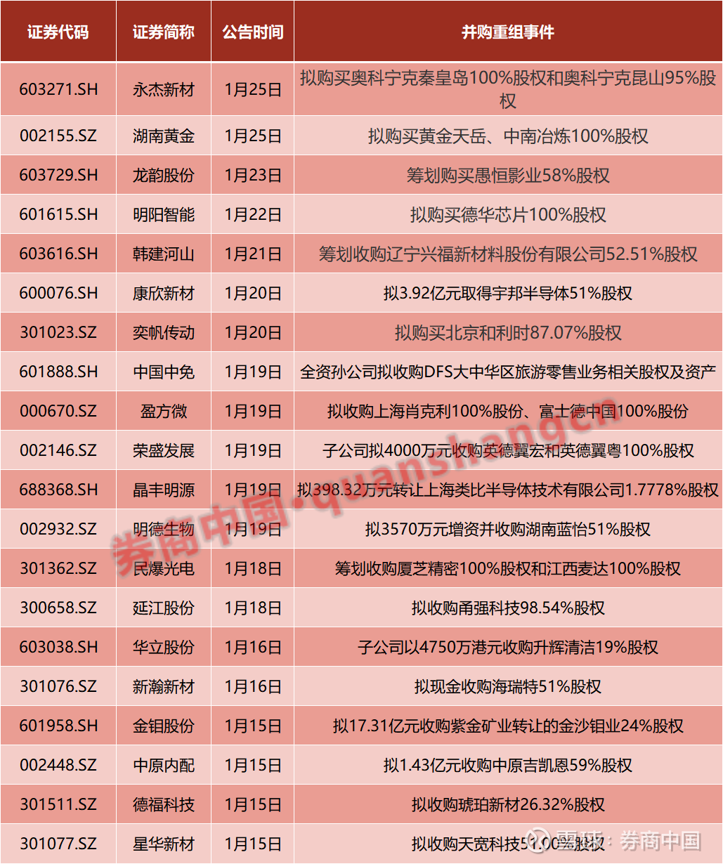 A股并购重组案例不断涌现。