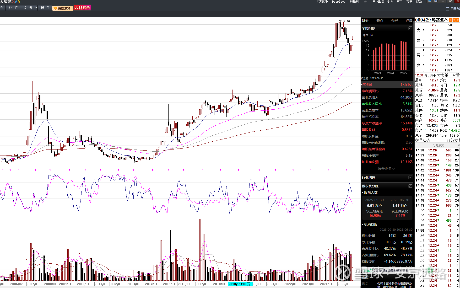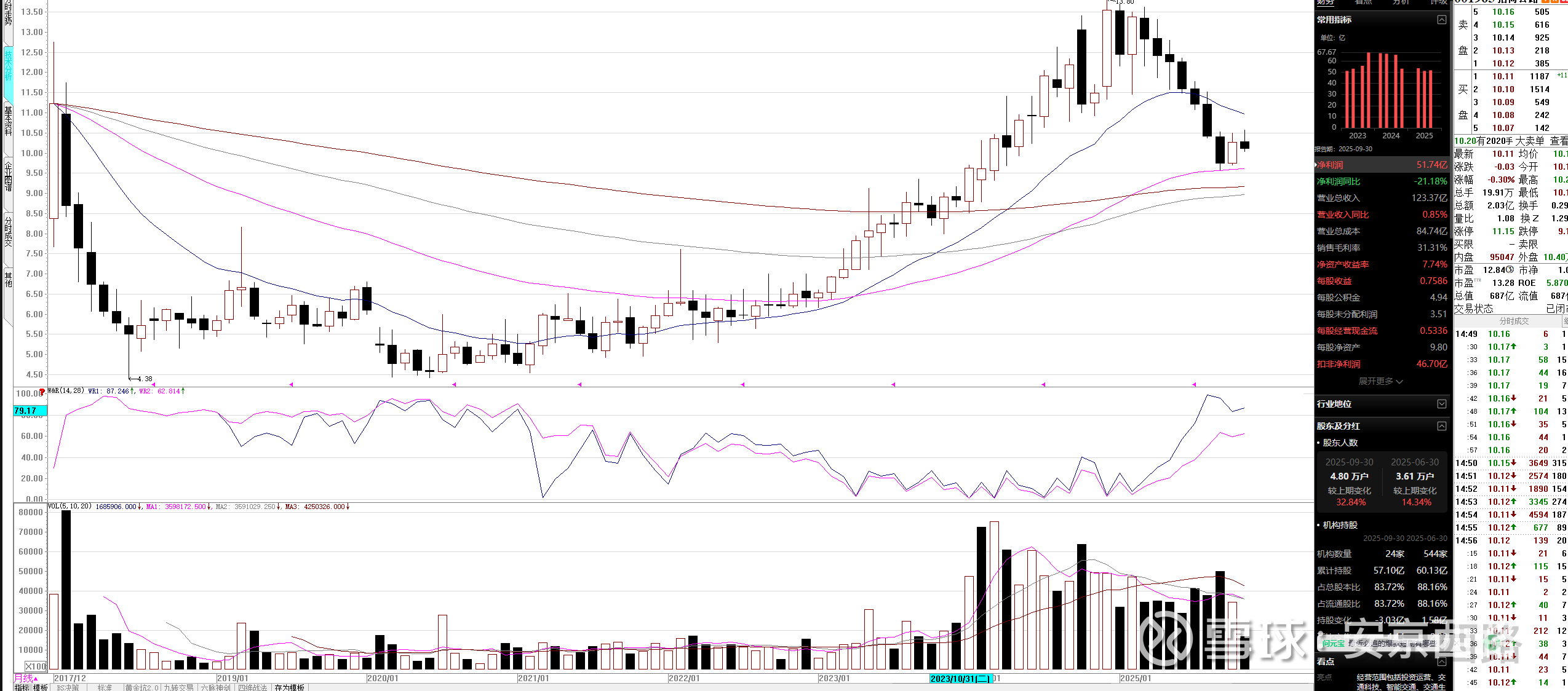 月线上看,超级大牛市,从2021年开始到2024年,在股市低迷的情况下一路逆势上涨,上涨了1.8倍,而2025年,科技和资源行情开始后,几乎跌了一年,从13.8元跌到了9.7元,跌幅30%。这公司这走势有个特点,涨时基本是月月涨,跌时是月月跌。