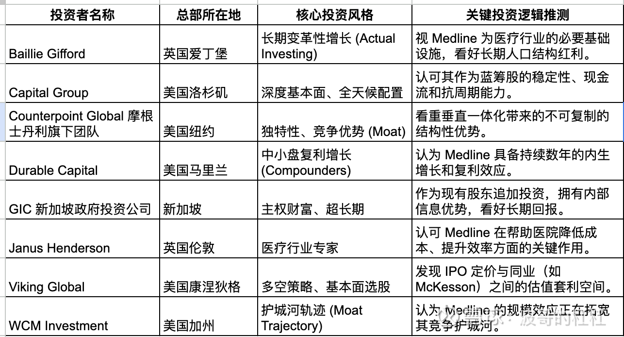 于此同时,Medline 的创始家族——米尔斯家族(The Mills Family)及其关联方也表示有兴趣认购2.5 亿美元,这样一来接近一半的募资额(按上限定价)由基石以及家族认购。