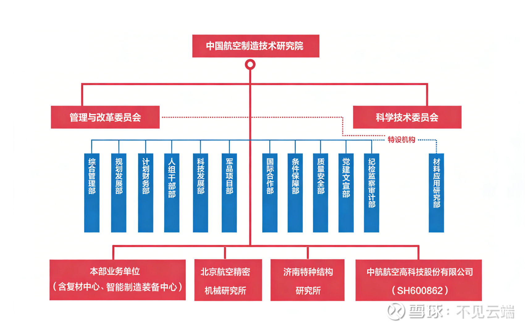 中航系旗下拥有数家A股上市公司,它们覆盖了航空工业全产业链,并在各自细分领域承担着关键的战略角色。中航高科由中航集团直接控股,并且由神秘单位中国航空制造技术研究院参股。具体架构如下: