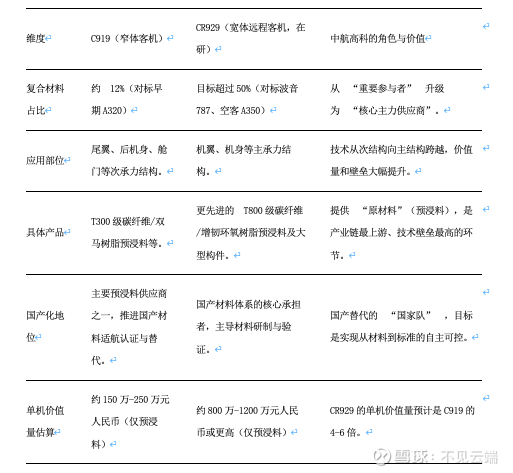 乐观估计(提供结构件):若直接供应大型复材结构件,价值量可占整机成本的15%-25%,即单机价值75万-125万元。