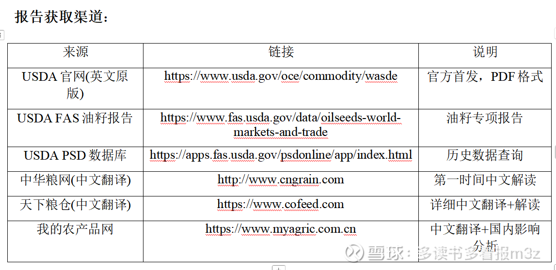 USDA (United States Department of Agriculture) 美国农业部发布的报告是全球农产品市场最权威的参考。