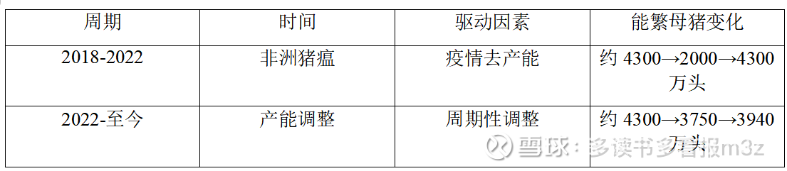 能繁母猪存栏 (Breeding Sow Inventory) 是最重要的领先指标。