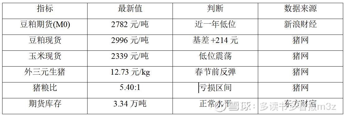 当前是春节前后的平淡期,可以等3-4月巴西到港压力释放后再做判断。如果届时猪粮比能回到6以上、能繁母猪环比企稳,需求端出现改善迹象, 或者是天气因素,可能会有大机会。