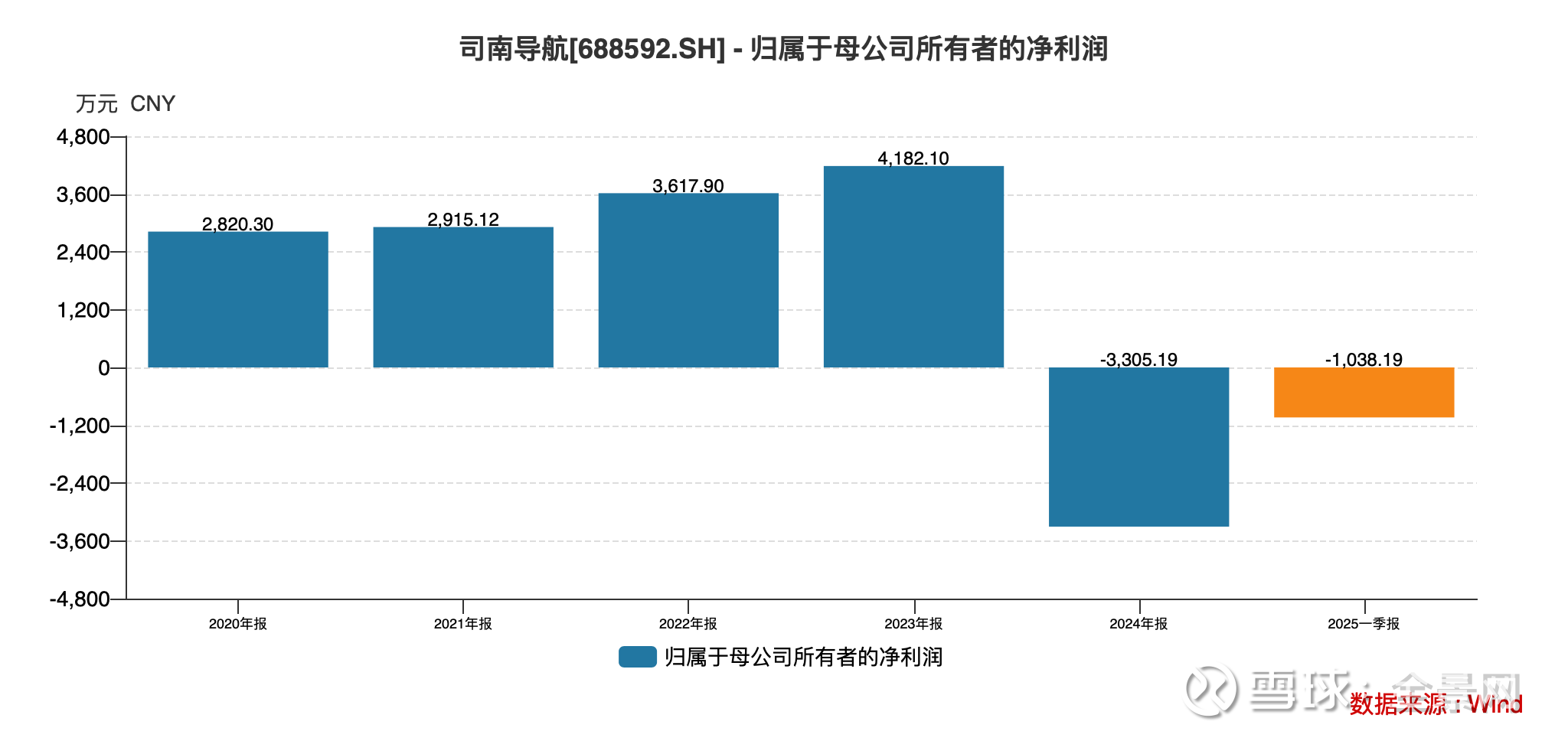 再加上公司2024年计提大量的信用减值损失和资产减值损失,司南导航2024年归母净亏损达到了3305.19万元,较2023年同比大跌179%。2025年一季度,公司归母净亏损同比扩大46.24%至1038.19万元,亏损态势加剧。