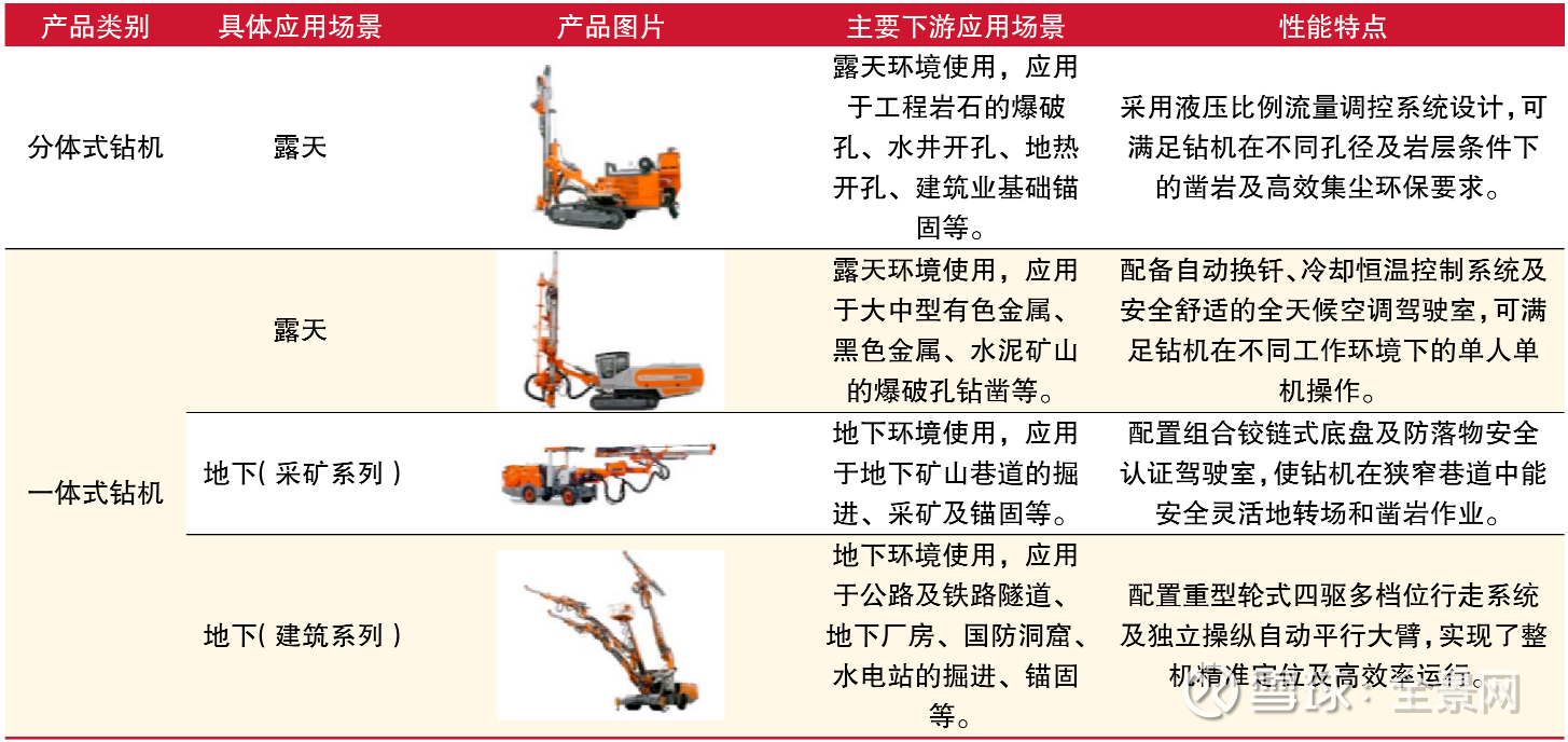 钻机、螺杆机产业上游为钢材等原材料和柴油机、电机等零部件;下游主要应用于矿山开采、工程建设、石化化工、医药生产等领域。钻机、螺杆机与上下游行业的关联度较高,上游原材料的价格变动直接影响钻机、螺杆机的相关成本,下游则直接影响钻机、螺杆机的需求,国内外稳定的基础设施建设相关需求,为钻机、螺杆机市场发展提供了有力支撑。