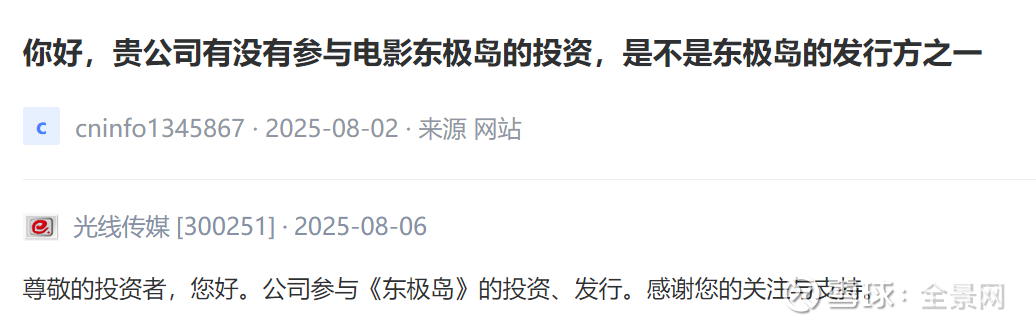 【投资者问】贵公司有没有参与电影东极岛的投资,是不是东极岛的发行方之一?