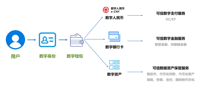 基于数字人民币前-中-后台整体解决方案,为 2.5 层金融机构提供“钱包管理+支付清算+场景创新”一站式运营平台。同时增加通证化存款、稳定币及RWA和通证化金融资产等数字资产、基于数字银行账户的新型综合数字货币钱包及数字支付底座。