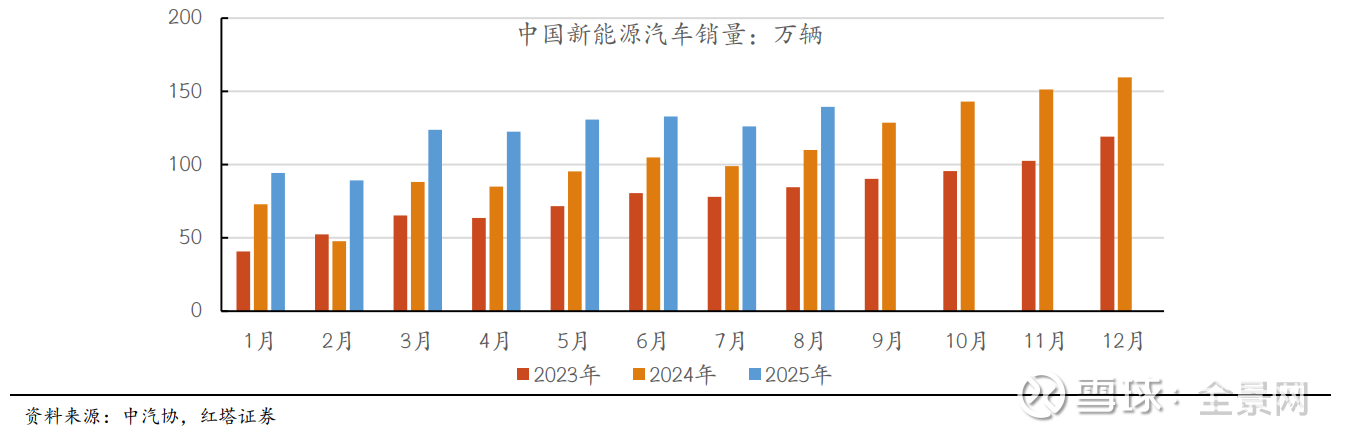 新能源汽车作为政策和产业的共振抓手,今年继续保持良好的增长,根据Wind相关数据,今年上半年累计销量693.41万辆,同比增长40.30%。由于去年同期的高基数,7、8月份增速有所回落,但仍保持在25%以上。