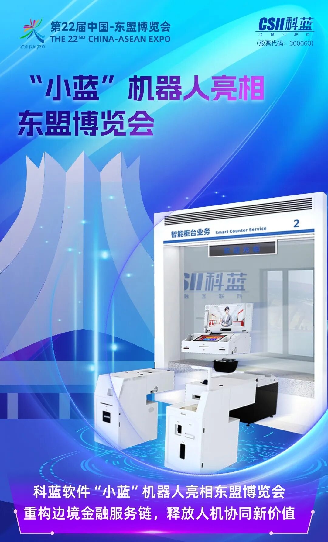 9月17日至21日,第22届中国-东盟博览会在广西南宁国际会展中心举办。本届展会吸引超45个国家,约3200家企业参展,作为中国与东盟经贸合作、推动“一带一路”高质量发展的核心平台,其人工智能展馆内,广西农商联合银行与科蓝软件联合推出的“小蓝”AI智能柜台,凭借对边境金融痛点的精准破解,成为现场焦点。