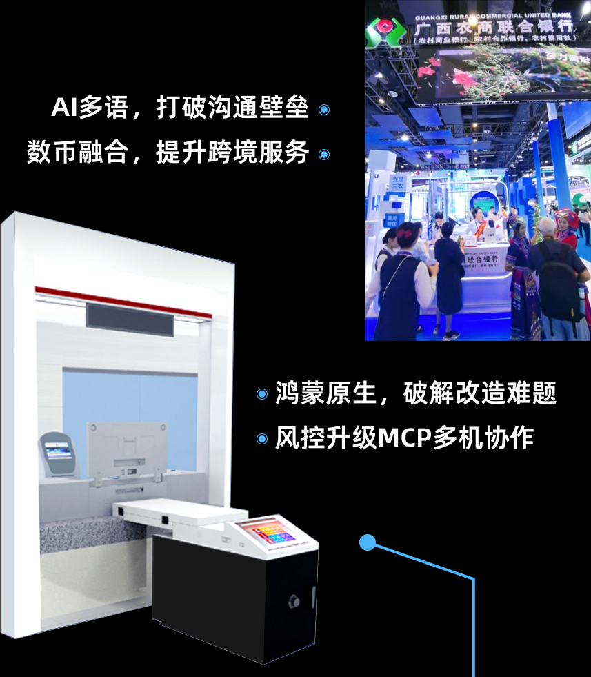 风控升级,强化安全保障:独创MCP多机协作协议,让网点内多设备形成“群聊式联防”机制,大幅提升欺诈交易拦截率。