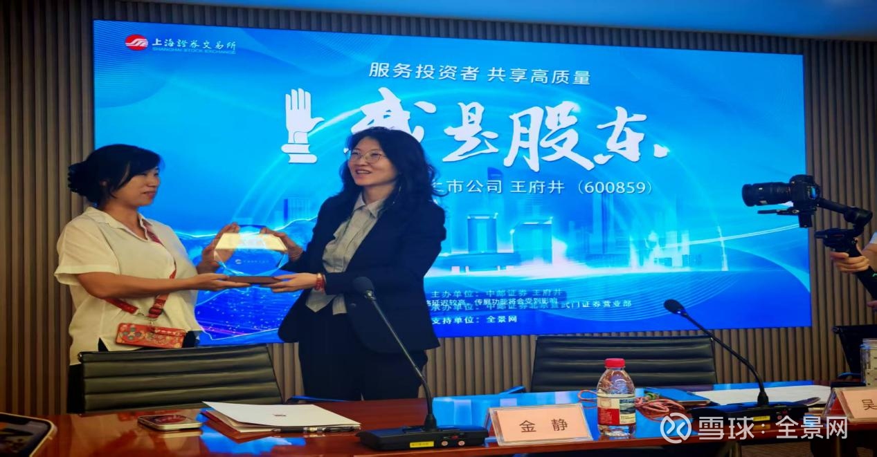 交流尾声,中邮证券代表上交所为王府井颁发“我是股东”活动纪念奖杯,感谢企业对投资者关系管理工作的重视与支持,副总裁吴珺表示将持续加强与投资者的沟通交流,以更优异的经营业绩回报股东与社会。