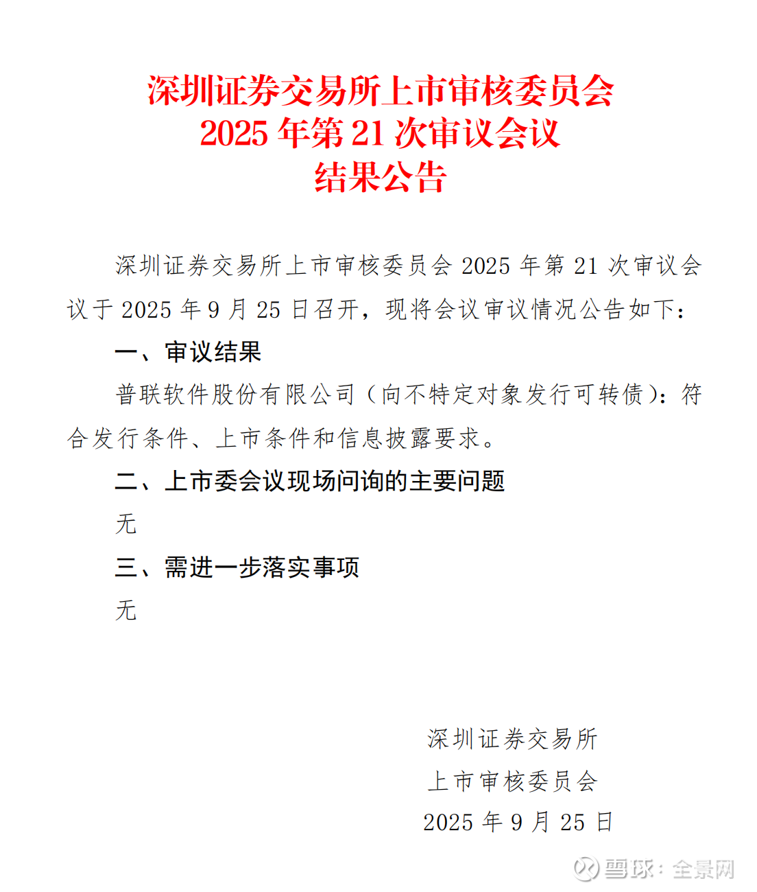 9月25日,普联软件股份有限公司(股票代码:300996,股票简称:普联软件)可转债发行申请成功过会。
