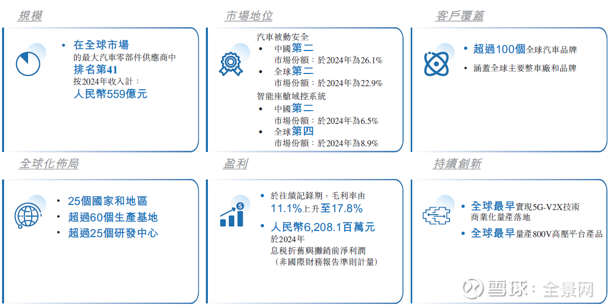 2004年成立的均胜电子,专注于汽车零部件的研发、制造和销售。2024年,公司实现年营业收入规模达559亿元人民币,于2024年全球汽车零部件行业中排名第41。根据弗若斯特沙利文的资料,按收入计,公司已经成长为中国和全球第二大汽车被动安全产品供货商;且公司还是中国第二大、全球第四大的智能座舱产品供应商。