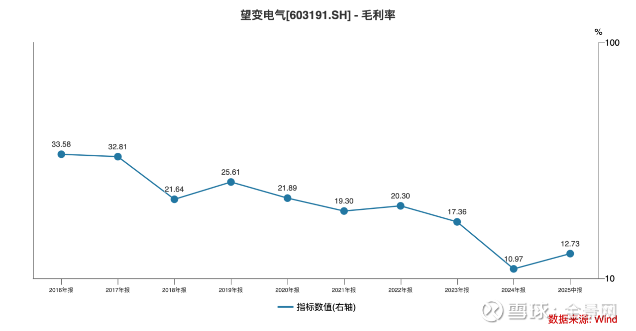 要知道的是,作为望变电气第一大收入来源的输配电设备业务,其一直以中低压变压器、箱式变电站为主,2025年推出的40.5kV智能充气柜虽进入国家电网集采,但同类产品市场份额非常低,且面临特变电工、金盘科技的价格压制,毛利率难有起色。