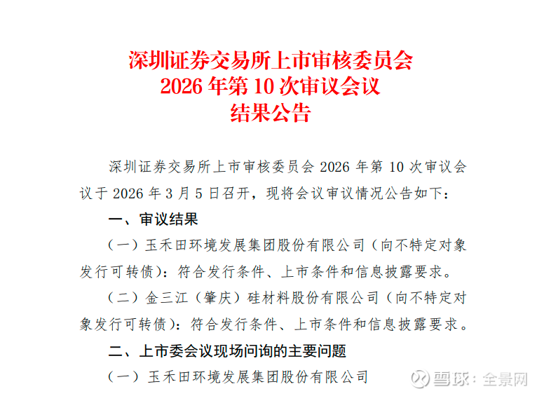 3月5日,玉禾田(300815.SZ)15亿元可转债发行项目获深交所上市审核委员会通过。本次再融资由国泰海通证券、立信会计师事务所、锦天城律师事务所提供中介服务。