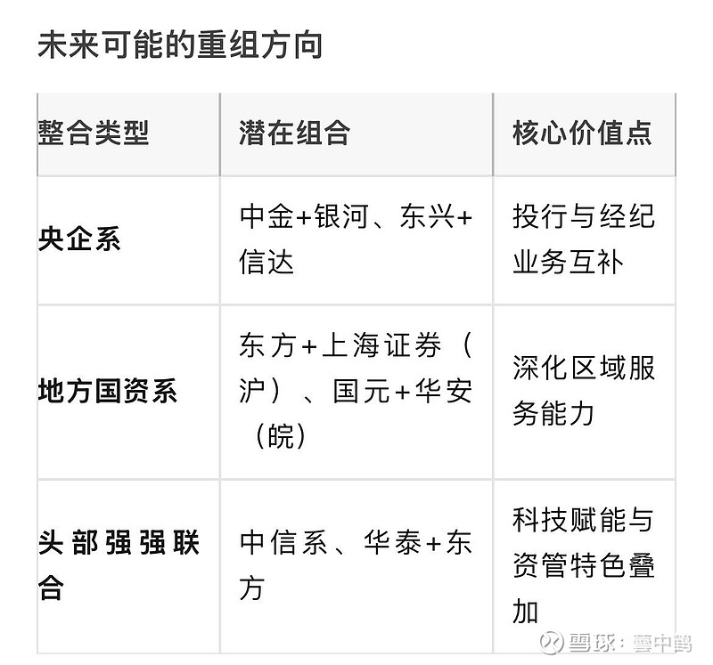 分析:上述政策文件说的很清楚,国家鼓励的是头部券商通过并购重组来实现快速做优做强,最终目的是要形成10家左右的“985”,2-3家的“清北”。至于中小券商之间的并购重组,并不在国家的规划之内。 上层的的建设,东方证券逆水行舟 不进则退啊. 抓住行业机遇,努力冲到头部,不然未来只会是一家平庸的地方券商了.