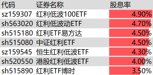 1、ETF(股息率=2024年每份额分红➗当前价格):