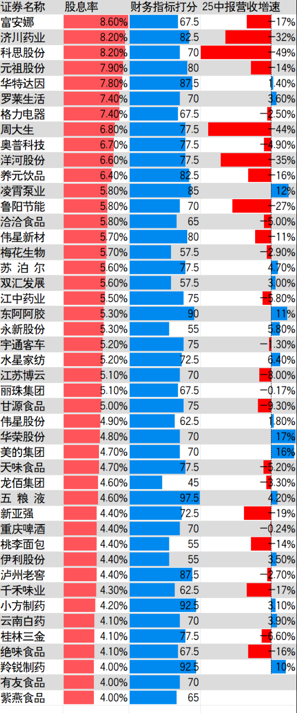 特地列出了财务指标打分,低于60分的很少。高于80分的10家左右。高于90分的,羚锐制药、五粮液、东阿阿胶、小方制药,我都持有。