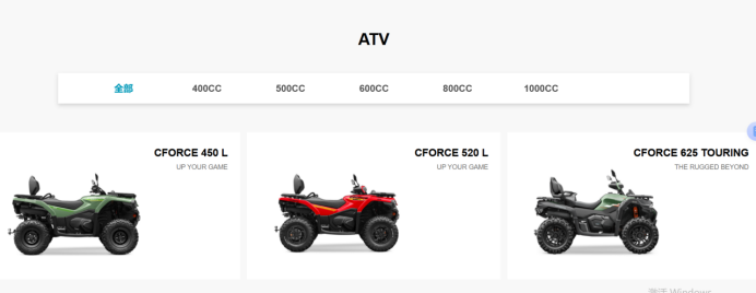 竞争领域:全地形车(ATV)、UTV(并排座全地形车)