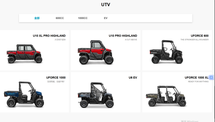 竞争领域:全地形车(ATV)、UTV、高尔夫球车。
