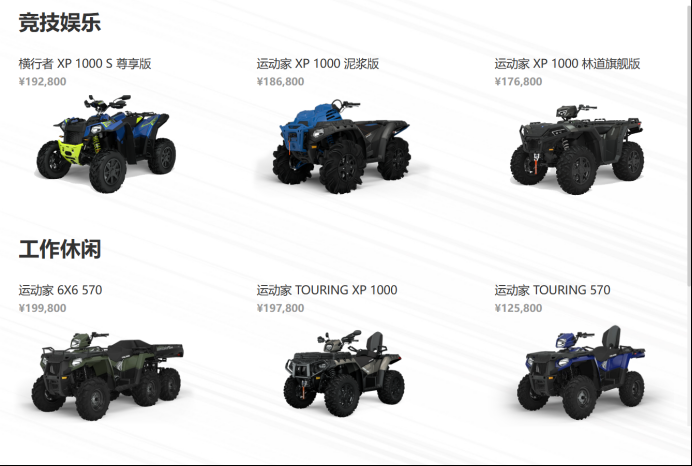 竞争领域:全地形车(ATV)、UTV、雪地摩托。