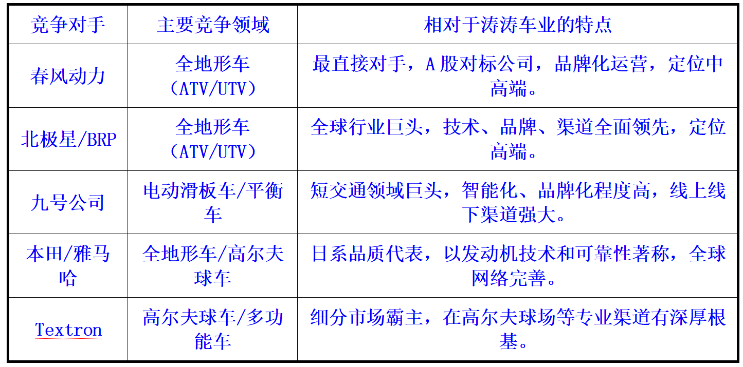 这类公司在某个特定产品类别上与涛涛车业存在激烈竞争。