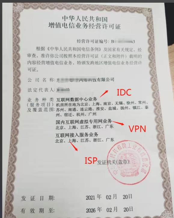 ISP/IDC牌照:这是基础营业许可证。