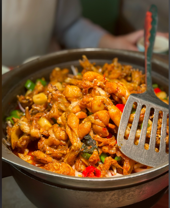 打荷岗将鸡翅倒入已预热好的石锅或铁盘中(为了保温),淋上门店每日现熬的少量蒜油(这是最后增加“锅气”的小心机),撒上几粒炸香的黄金蒜末和葱花。