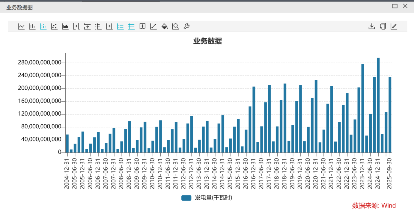 运营数据:重点关注年度发电量。虽然稳定,但仍有微小波动,需关注长江流域的来水情况(偏丰、偏枯)。