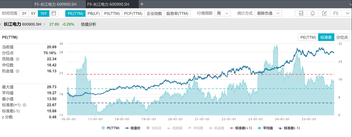 市盈率(PE):在稳定的盈利预期下,其PE在一个相对固定的区间内波动(例如15-25倍)。当因市场恐慌或短期来水偏枯导致PE跌至区间下限时,是较好的介入时机。