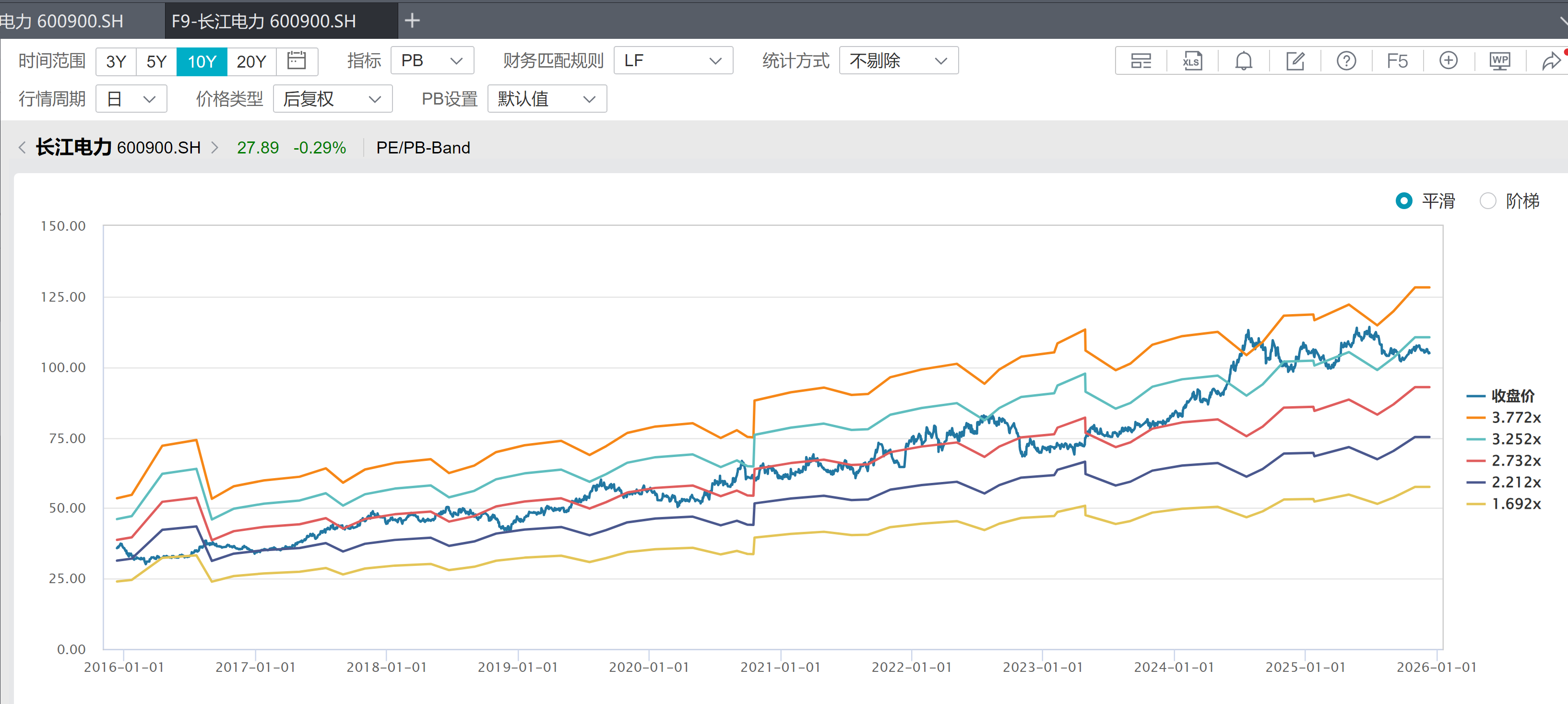 市净率(PB):由于其净资产(大坝资产)价值巨大且稳定,PB也是一个重要参考,通常也运行在一个固定通道内。