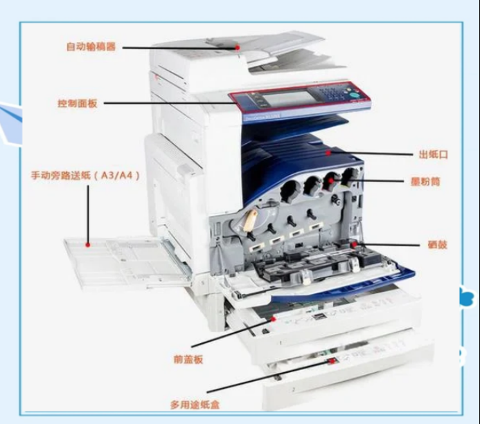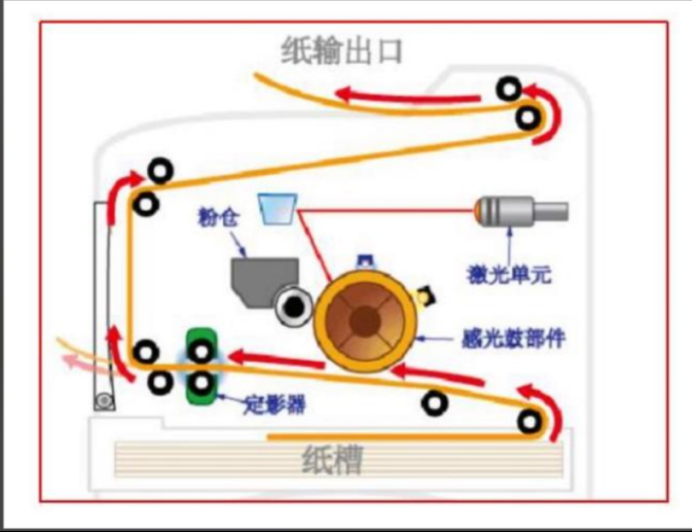 (2) 它干啥用: 负责把电脑里的文字图像,“画”到硒鼓上,再“转印”和“烫”到纸上。这个过程像用激光“刻字”、用碳粉“显影”、用高温“定型”。