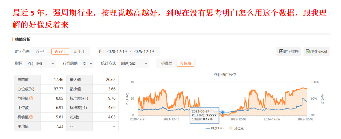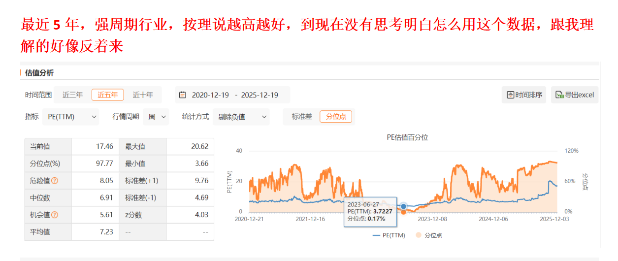 强周期股,越高越好,越是投资的好时候,越低越危险