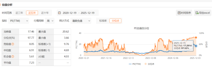 市盈率(PE)15.73倍:意思是,按他2025年这个不太行的利润算,你需要花15.73年才能靠利润回本。这个数比同行平均(12.5倍)高,说明市场觉得他暂时“偏贵”,因为利润太拉胯了。