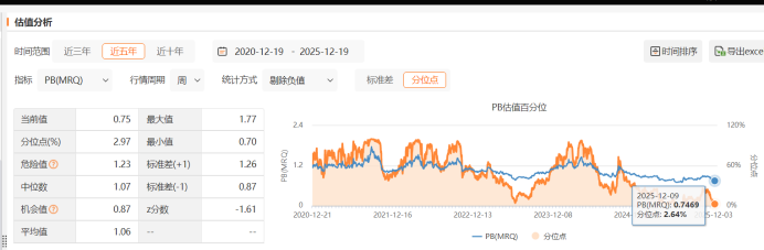 市净率(PB)0.88倍(年初):这个更重要!意思是,公司的股票市值比它家所有矿、设备、厂房等“家当”的账面价值还要打88折。这就是“破净”——你花1块钱,能买到价值1.14块的资产。说明市场对他的短期表现极度悲观,把股价砸得很便宜,但家底(资产)是实实在在的。