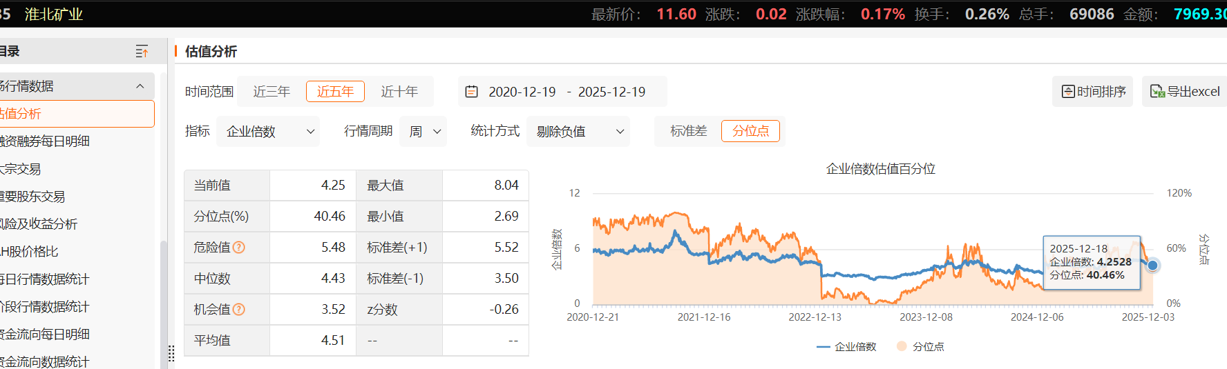 市盈率(PE)11.00倍:神奇的事情发生了!因为利润增长太快,虽然股价可能会涨,但估值(PE)反而从15.73倍降到了11倍,比行业平均的12.5倍还低。这叫“以成长消化估值”。就像你买了个成长快的小公司,虽然股价涨了,但因为它赚的钱涨得更快,反而显得更便宜了。