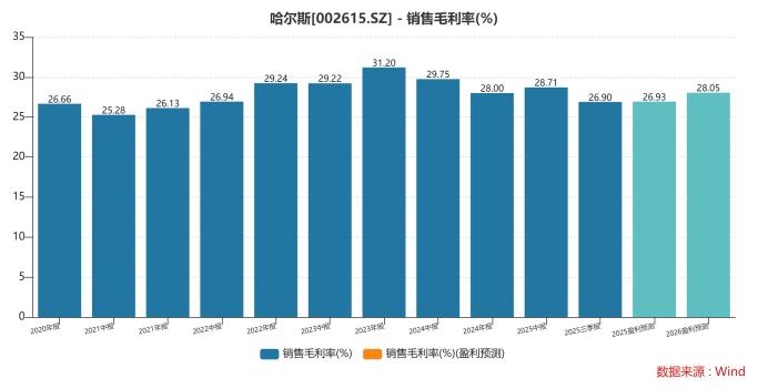 但2026年预计会回升(到28.2%甚至更高),因为产品结构优化了(自己利润高的品牌卖得多了),规模也上来了。